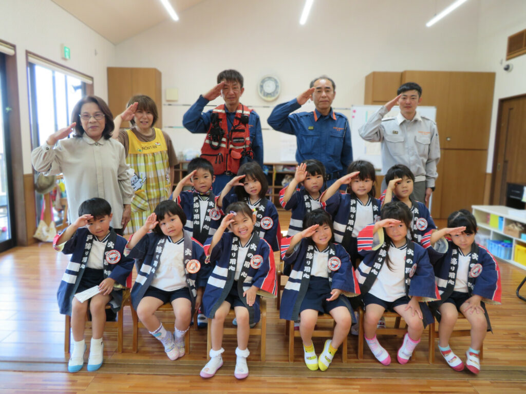 【防火】の二文字を背に纏い、かっこいい法被姿のゆり組さくら組のお友だち(*^^)v